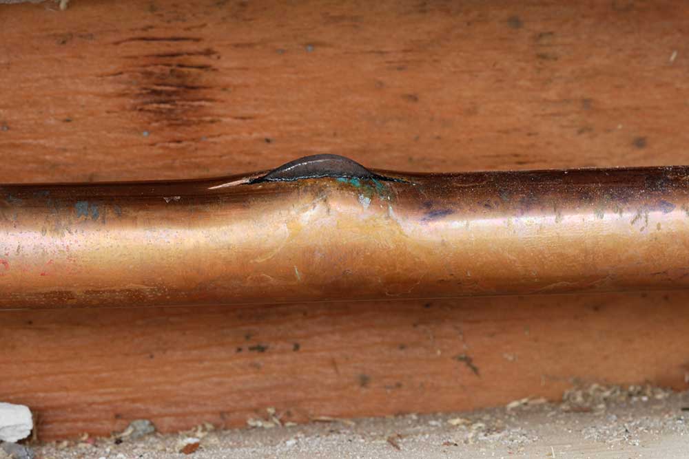 Do Not attempt to thaw frozen pipes with running water. Immediately shut off water!